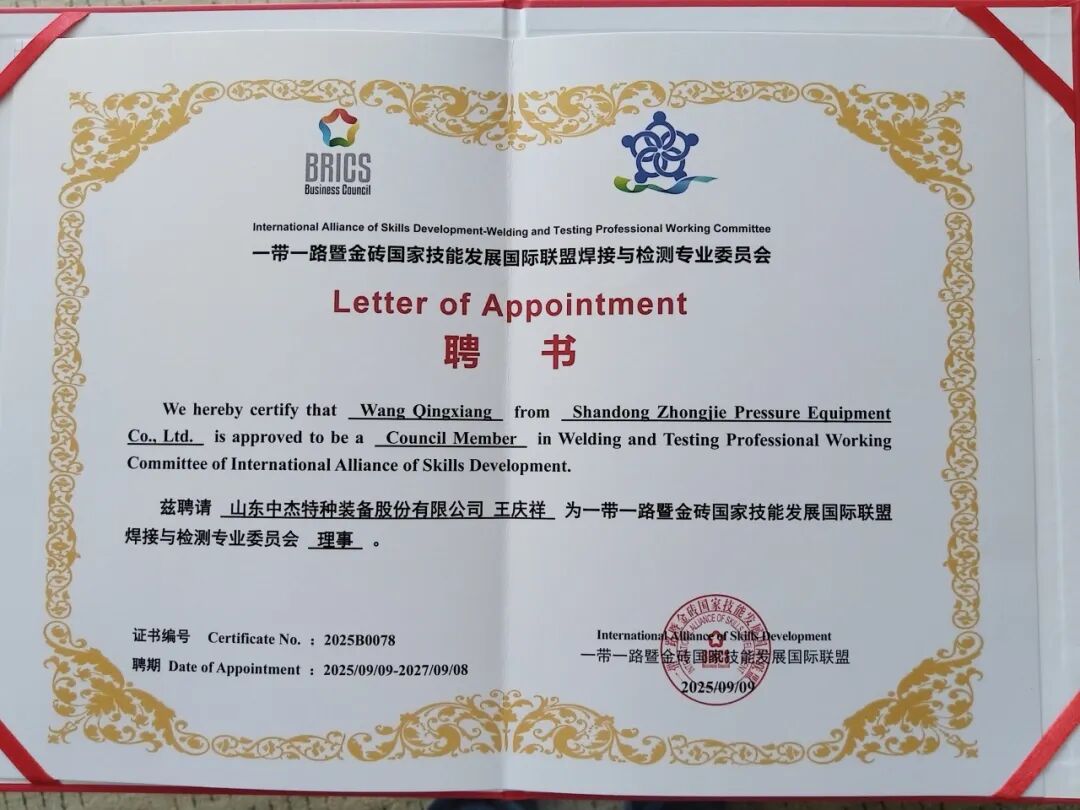 本次大賽組委會(huì)特聘我公司高級(jí)技師王慶祥擔(dān)任大賽裁判。王慶祥擁有20多年焊接及培訓(xùn)經(jīng)驗(yàn),為國(guó)家級(jí)大賽裁判員、高級(jí)工程師、機(jī)械行業(yè)特級(jí)技師、中國(guó)機(jī)械工業(yè)人才評(píng)價(jià)中心專家,同時(shí)擔(dān)任一帶一路暨金磚國(guó)家技能發(fā)展國(guó)際聯(lián)盟焊接與檢測(cè)專業(yè)委員會(huì)委員。此次受邀執(zhí)裁,不僅是對(duì)其個(gè)人專業(yè)能力的高度認(rèn)可,也充分體現(xiàn)了中杰特裝在焊接技術(shù)領(lǐng)域的深厚積淀與行業(yè)權(quán)威。賽事期間,我公司生產(chǎn)的LCO?(液態(tài)二氧化碳)及LAr(液態(tài)氬氣)深冷容器承擔(dān)了大賽焊接氣體的儲(chǔ)存與保障任務(wù),為大賽順利推進(jìn)提供了可靠支撐,贏得組委會(huì)與參賽各方的一致好評(píng)。